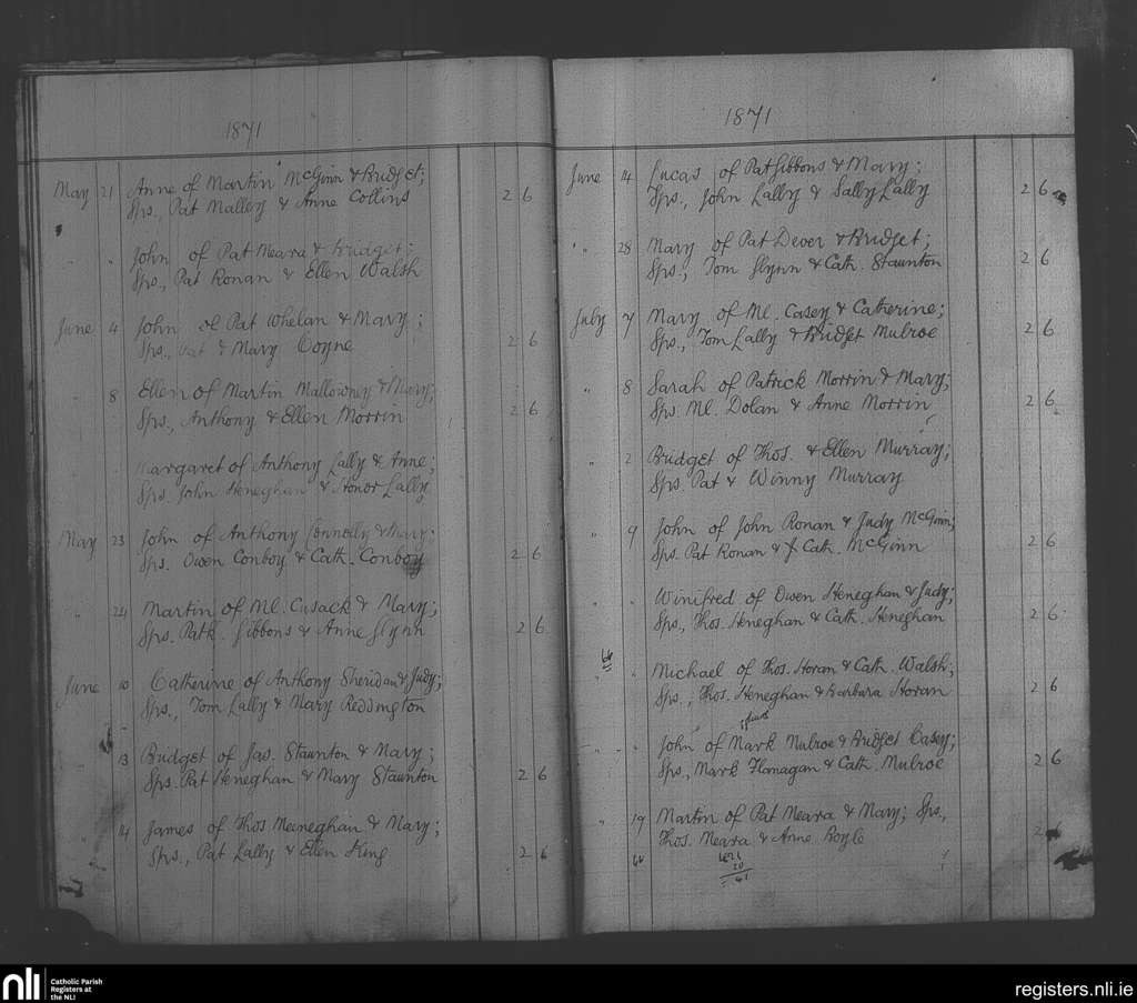 Tourmakeady; County of Mayo; Archdiocese of Tuam. Baptisms, May 1871 to July 1871