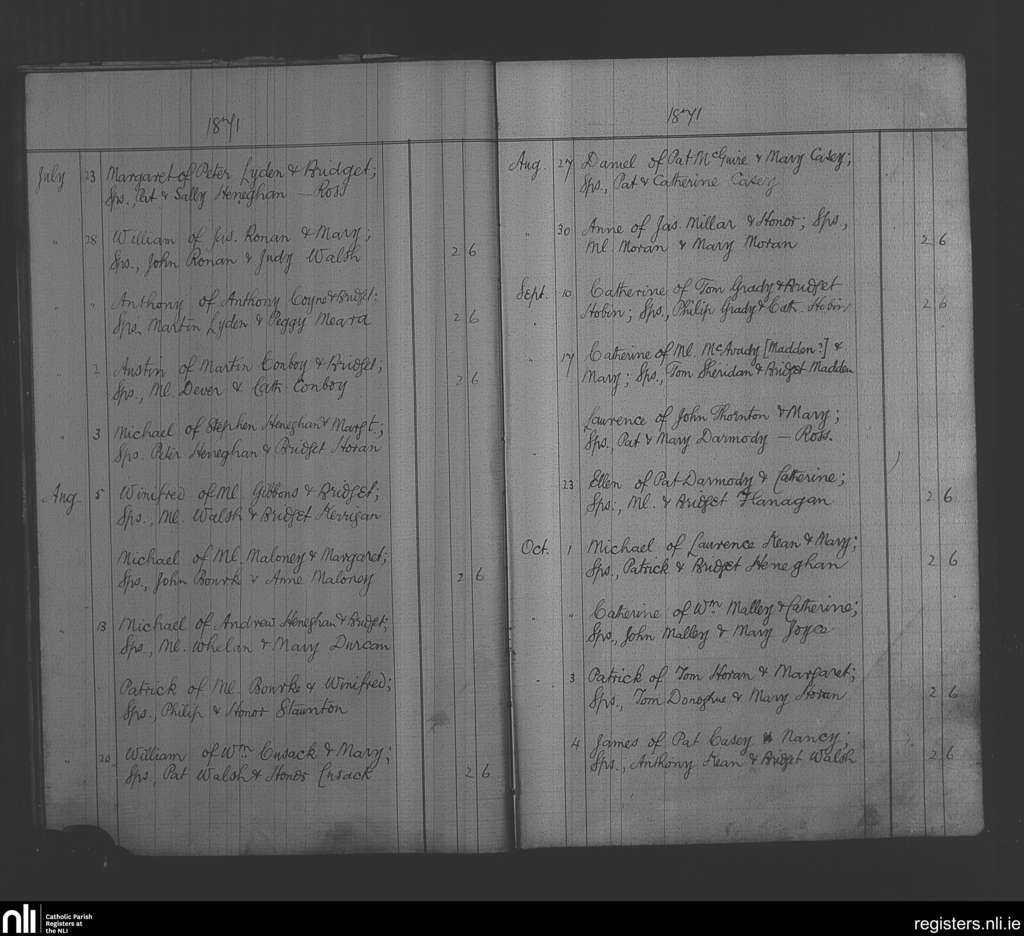 Tourmakeady; County of Mayo; Archdiocese of Tuam. Baptisms, July 1871 to Oct. 1871
