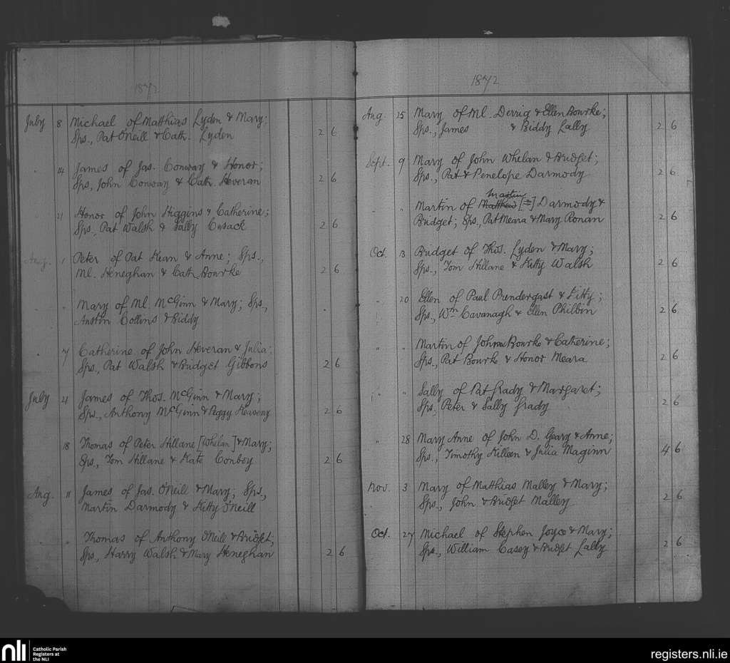 Tourmakeady; County of Mayo; Archdiocese of Tuam. Baptisms, July 1872 to Nov. 1872
