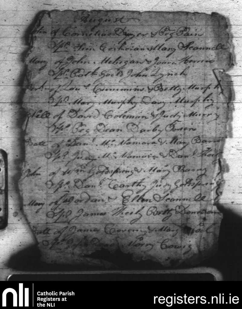 Clountead, Ballingarry and Ballymartle; County of Cork; Diocese of Cork and Ross. Baptisms, Aug. 1810