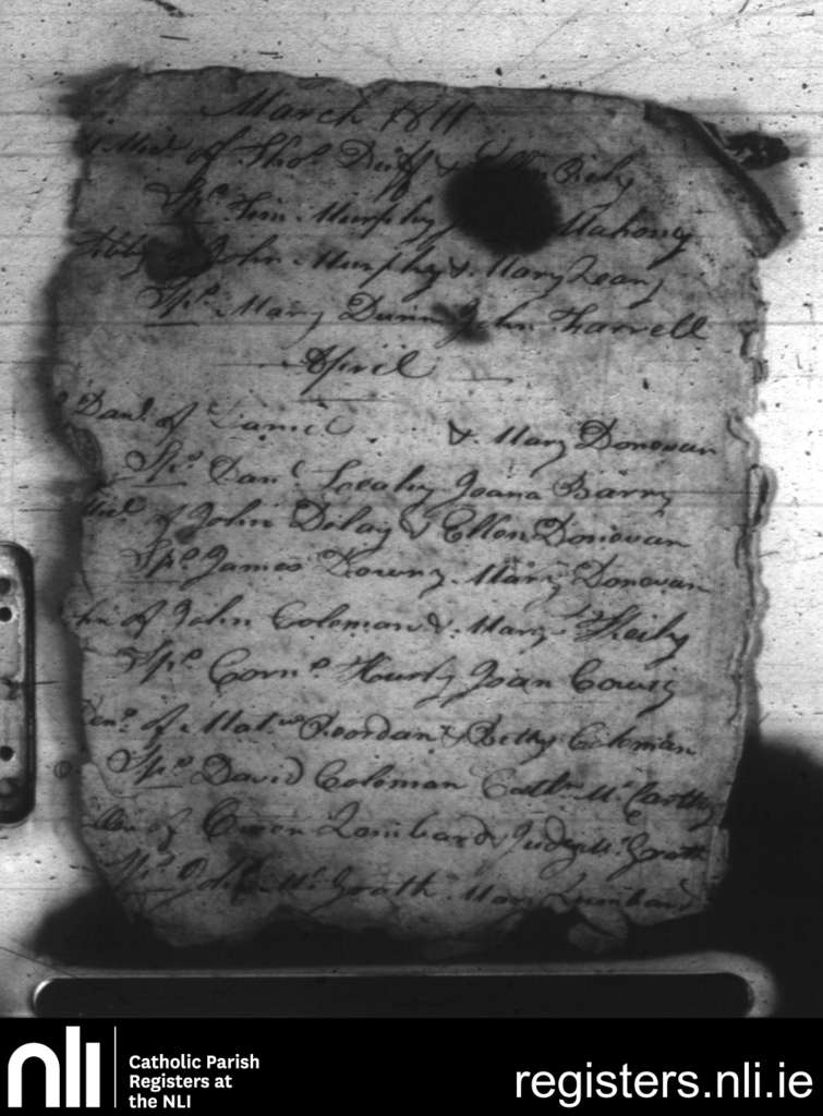 Clountead, Ballingarry and Ballymartle; County of Cork; Diocese of Cork and Ross. Baptisms, Mar. 1811 to Apr. 1811