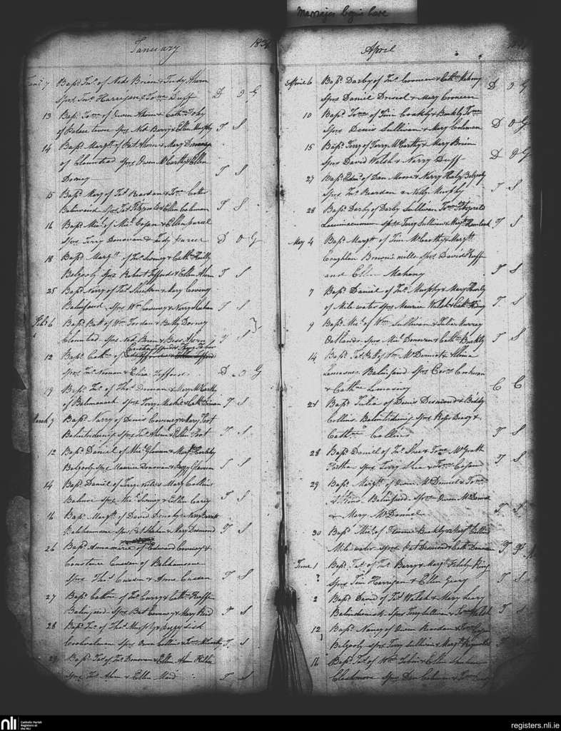 Clountead, Ballingarry and Ballymartle; County of Cork; Diocese of Cork and Ross. Baptisms, Jan. 1837 to June 1837