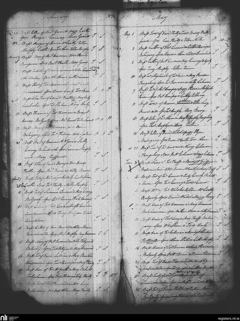 Clountead, Ballingarry and Ballymartle; County of Cork; Diocese of Cork and Ross. Baptisms, Feb. 1838 to June 1838