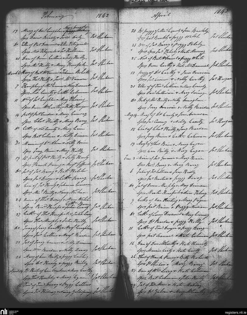 Clountead, Ballingarry and Ballymartle; County of Cork; Diocese of Cork and Ross. Baptisms, Feb. 1842 to June 1842