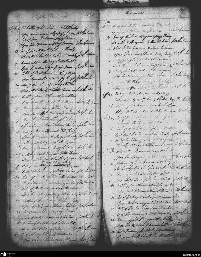 Clountead, Ballingarry and Ballymartle; County of Cork; Diocese of Cork and Ross. Baptisms, Sep. 1843 to Jan. 1844