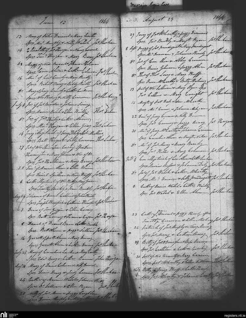 Clountead, Ballingarry and Ballymartle; County of Cork; Diocese of Cork and Ross. Baptisms, June 1844 to Nov. 1844