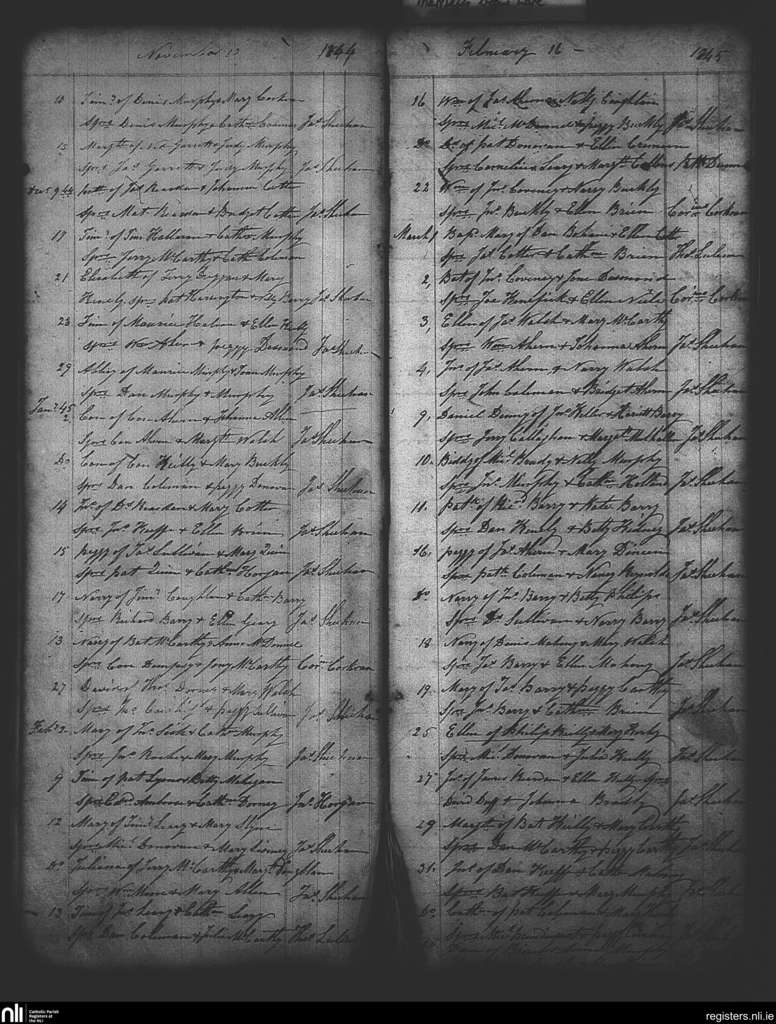 Clountead, Ballingarry and Ballymartle; County of Cork; Diocese of Cork and Ross. Baptisms, Nov. 1844 to Mar. 1845