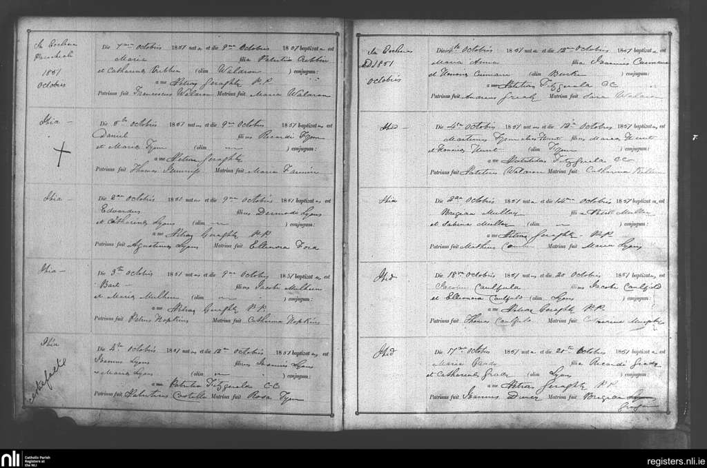 Bekan; County of Mayo; Archdiocese of Tuam. Baptisms, Oct. 1851
