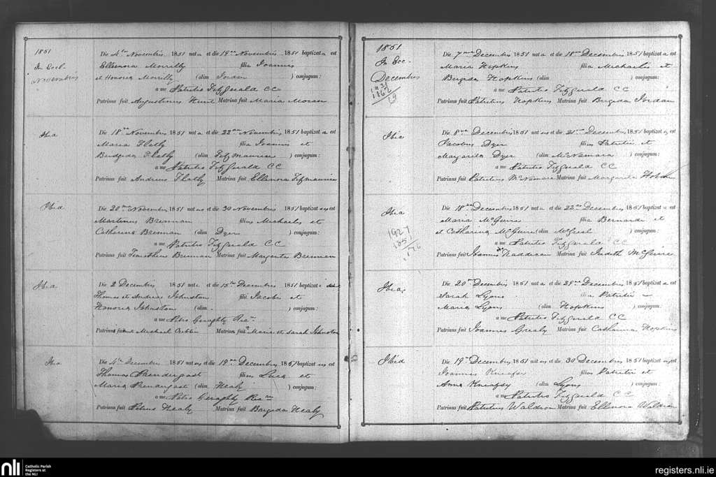 Bekan; County of Mayo; Archdiocese of Tuam. Baptisms, Nov. 1851 to Dec. 1851