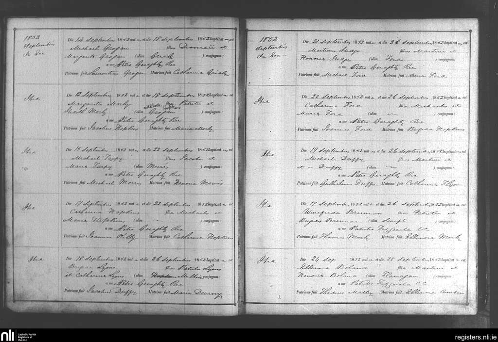 Bekan; County of Mayo; Archdiocese of Tuam. Baptisms, Sep. 1852