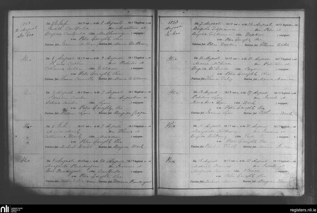 Bekan; County of Mayo; Archdiocese of Tuam. Baptisms, Aug. 1853
