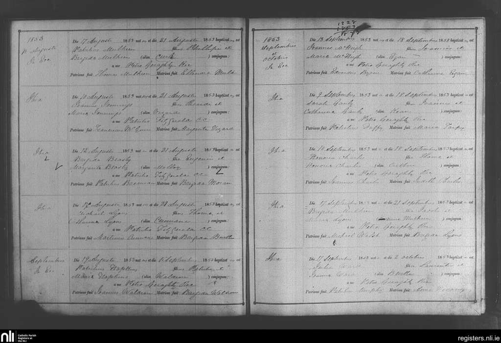 Bekan; County of Mayo; Archdiocese of Tuam. Baptisms, Aug. 1853 to Oct. 1853