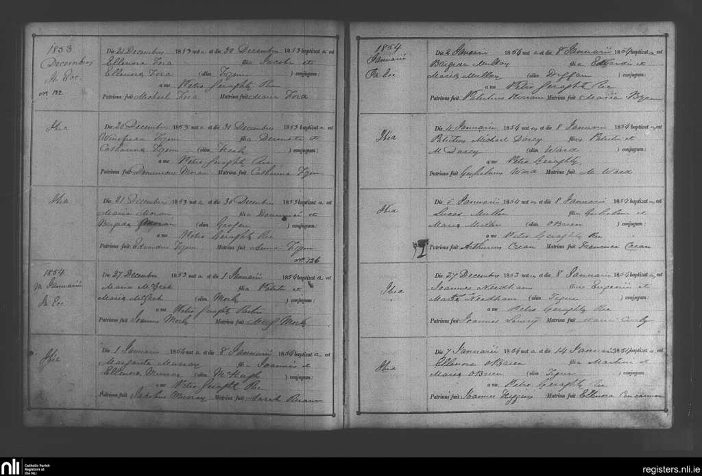 Bekan; County of Mayo; Archdiocese of Tuam. Baptisms, Dec. 1853 to Jan. 1854