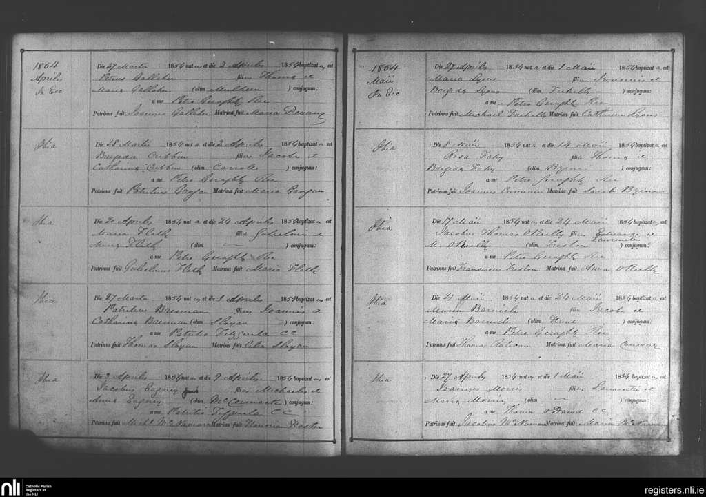 Bekan; County of Mayo; Archdiocese of Tuam. Baptisms, Apr. 1854 to May 1854