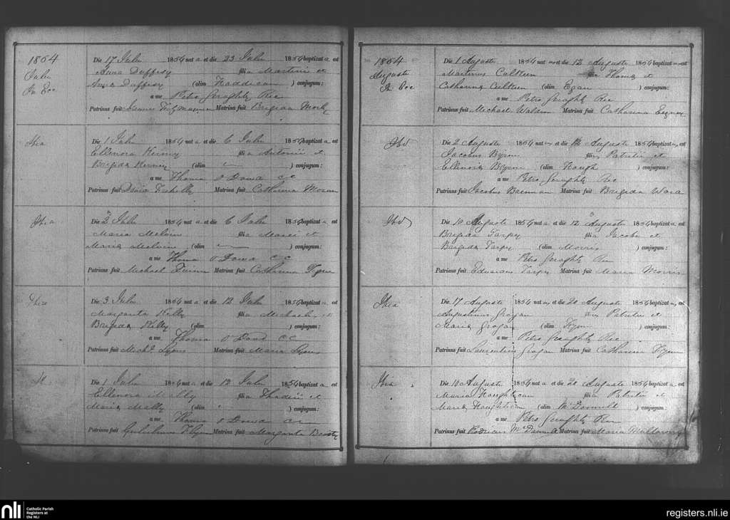Bekan; County of Mayo; Archdiocese of Tuam. Baptisms, July 1854 to Aug. 1854