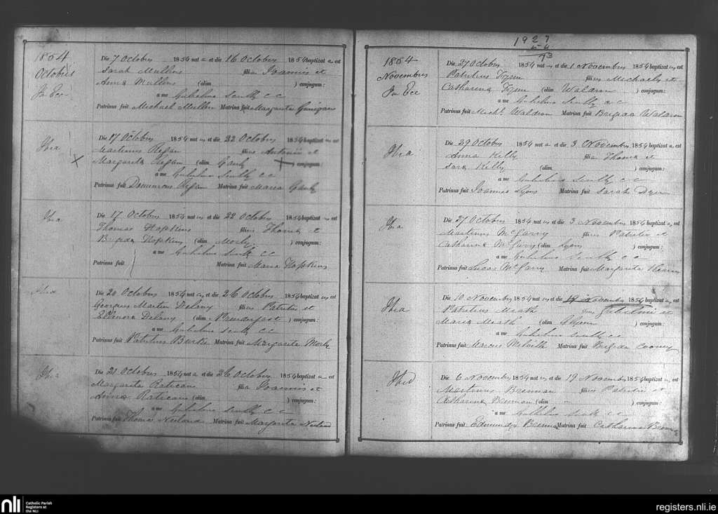 Bekan; County of Mayo; Archdiocese of Tuam. Baptisms, Oct. 1854 to Nov. 1854