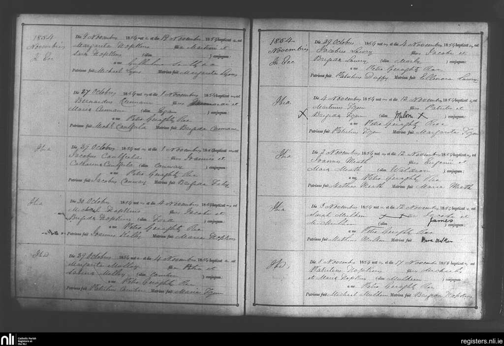 Bekan; County of Mayo; Archdiocese of Tuam. Baptisms, Nov. 1854