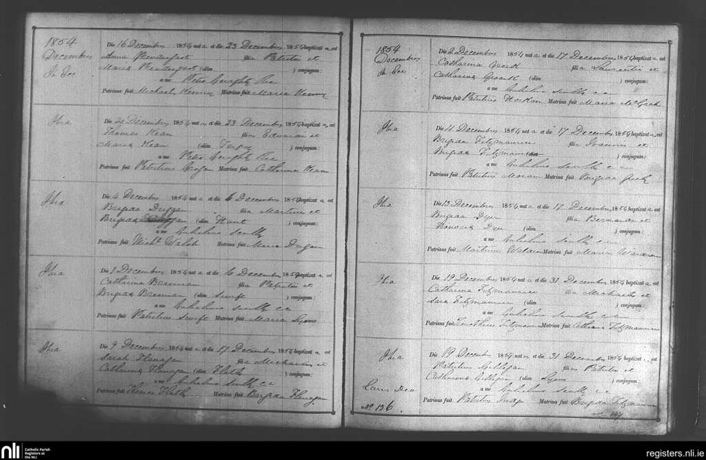 Bekan; County of Mayo; Archdiocese of Tuam. Baptisms, Dec. 1854