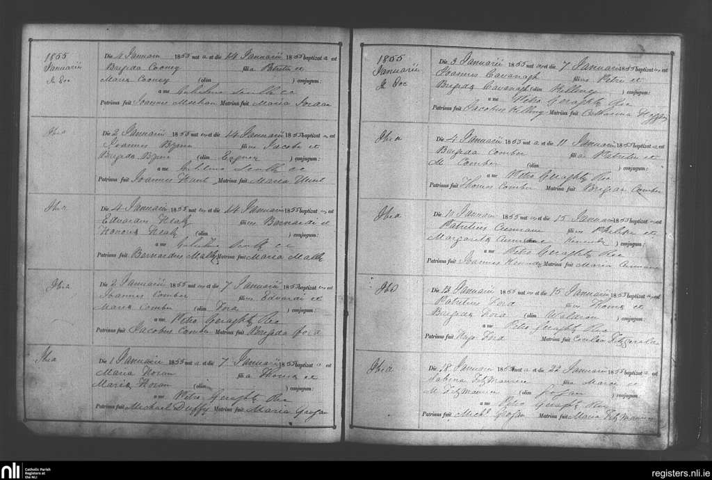 Bekan; County of Mayo; Archdiocese of Tuam. Baptisms, Jan. 1855