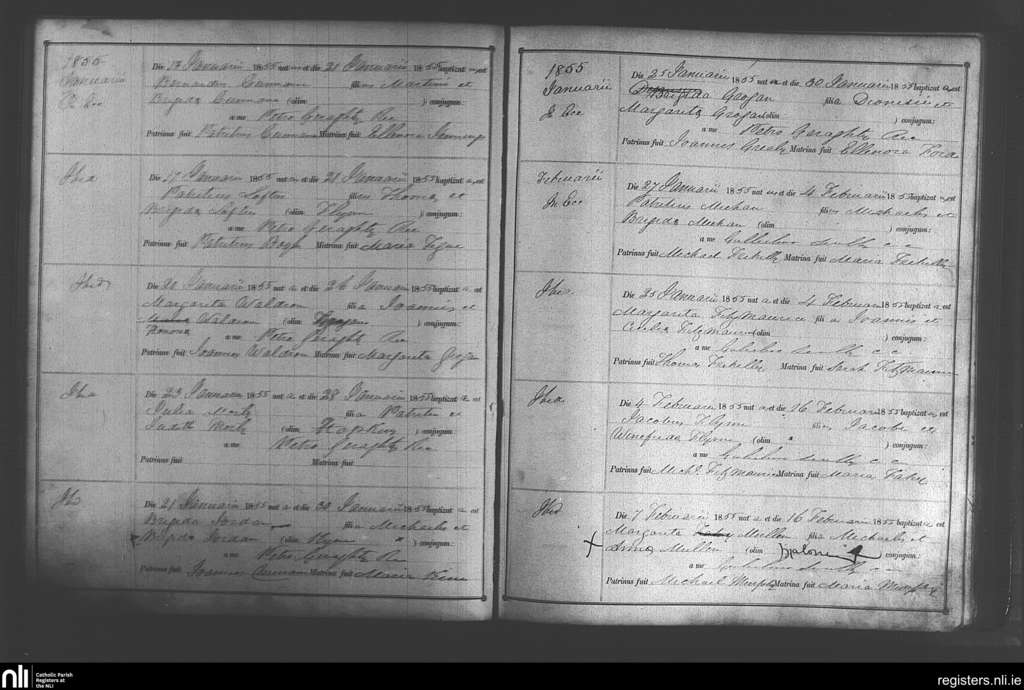 Bekan; County of Mayo; Archdiocese of Tuam. Baptisms, Jan. 1855 to Feb. 1855