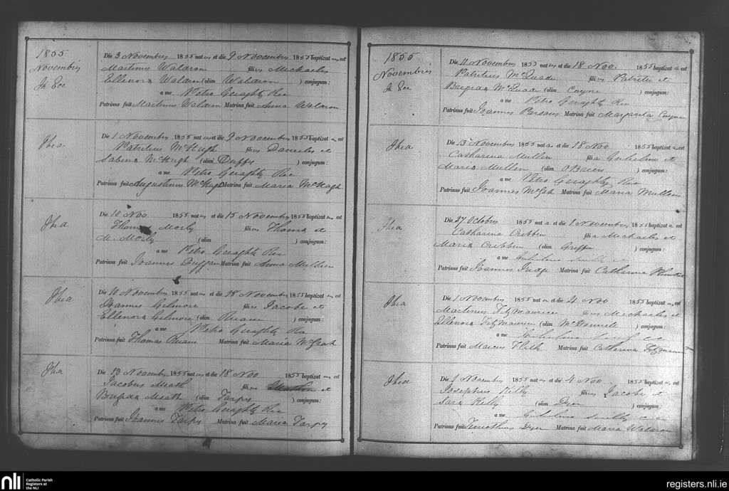 Bekan; County of Mayo; Archdiocese of Tuam. Baptisms, Nov. 1855