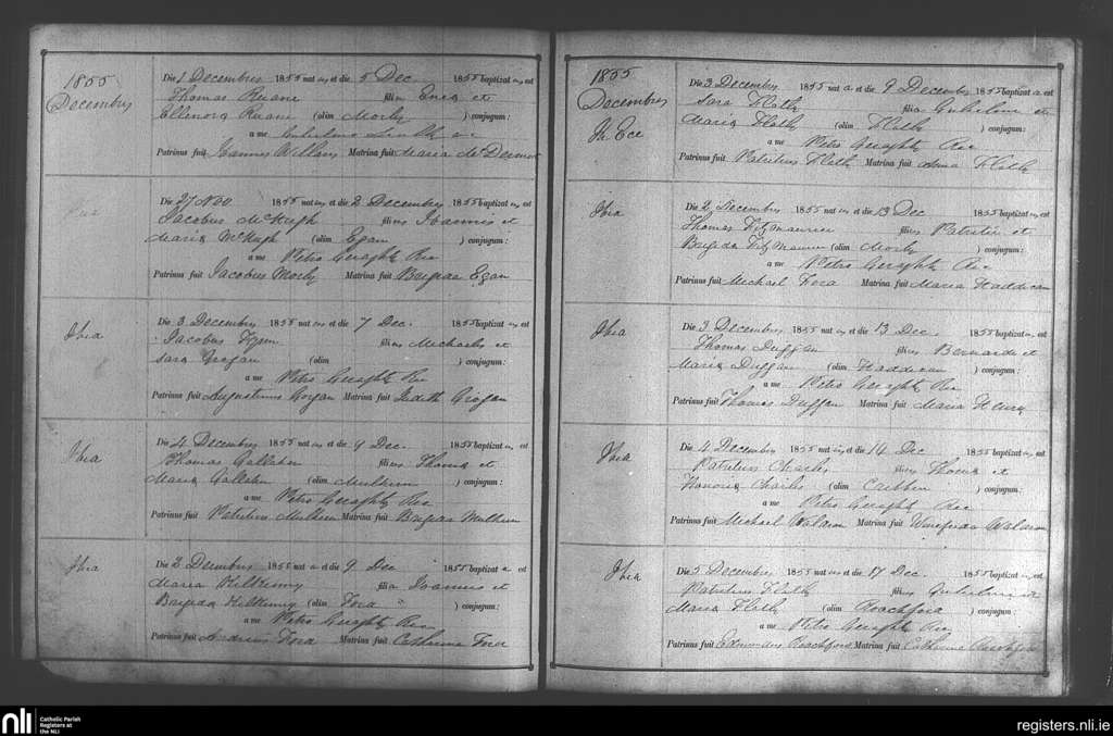 Bekan; County of Mayo; Archdiocese of Tuam. Baptisms, Dec. 1855