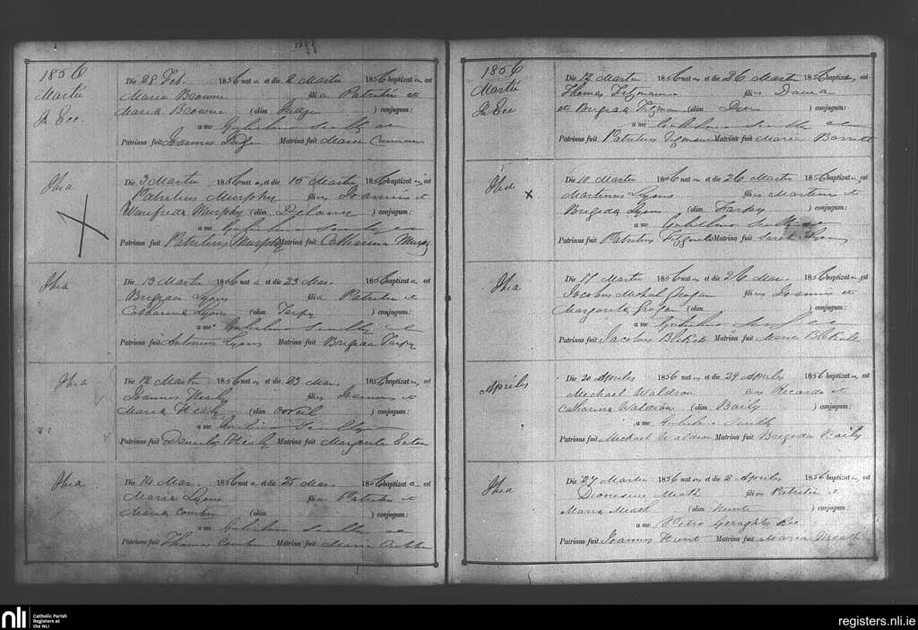 Bekan; County of Mayo; Archdiocese of Tuam. Baptisms, Mar. 1856 to May 1856