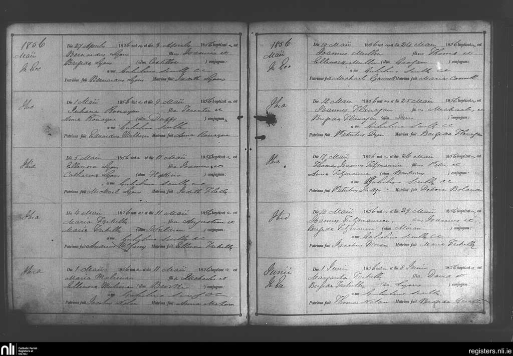 Bekan; County of Mayo; Archdiocese of Tuam. Baptisms, May 1856 to June 1856