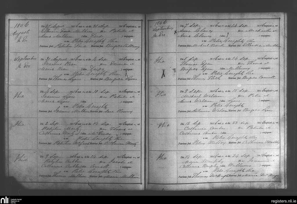 Bekan; County of Mayo; Archdiocese of Tuam. Baptisms, Aug. 1856 to Sep. 1856