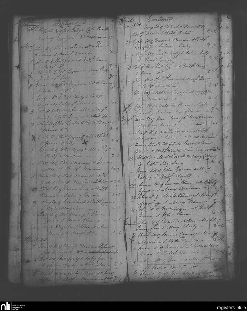 Boyounagh; County of Galway; Archdiocese of Tuam. Baptisms, Feb. 1842 to June 1842