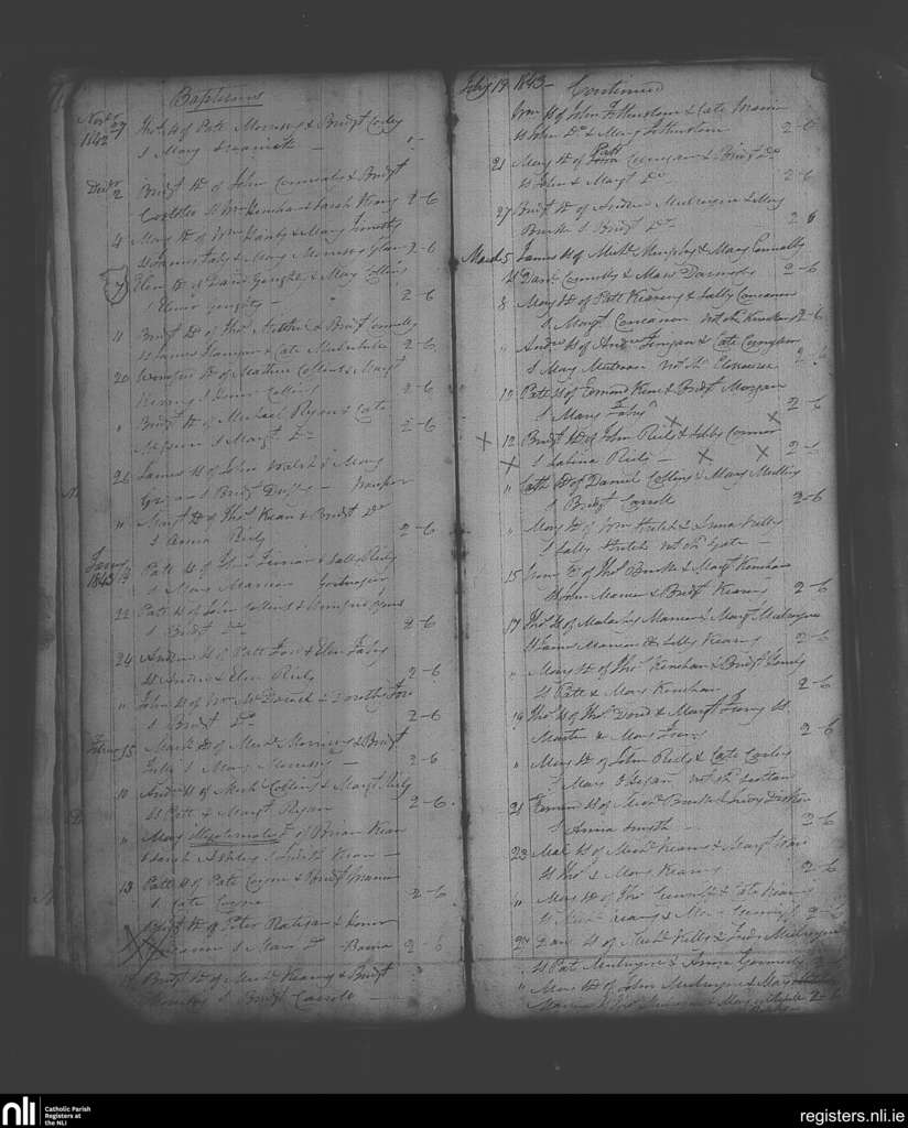 Boyounagh; County of Galway; Archdiocese of Tuam. Baptisms, Nov. 1842 to Mar. 1843