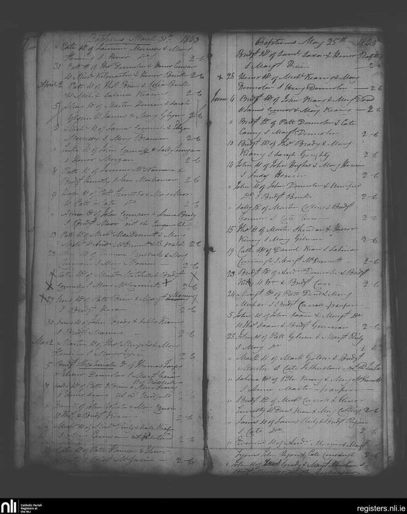 Boyounagh; County of Galway; Archdiocese of Tuam. Baptisms, Mar. 1843 to June 1843