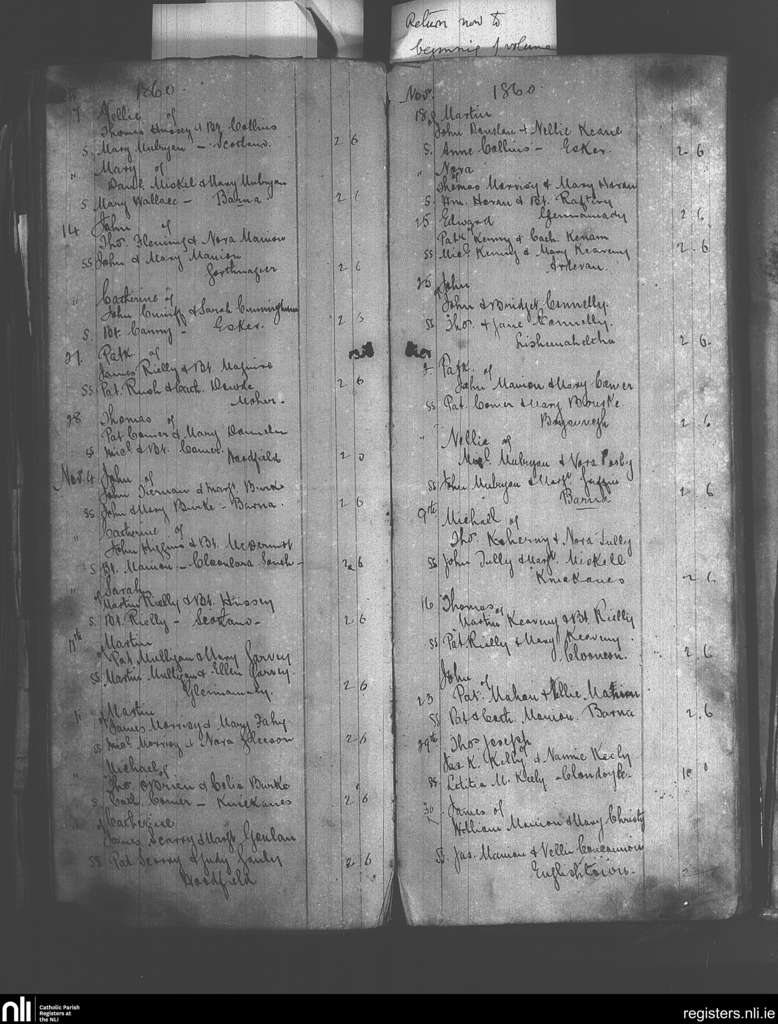 Boyounagh; County of Galway; Archdiocese of Tuam. Baptisms, Oct. 1860 to Dec. 1860