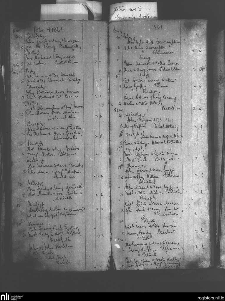 Boyounagh; County of Galway; Archdiocese of Tuam. Baptisms, Dec. 1860 to Feb. 1861