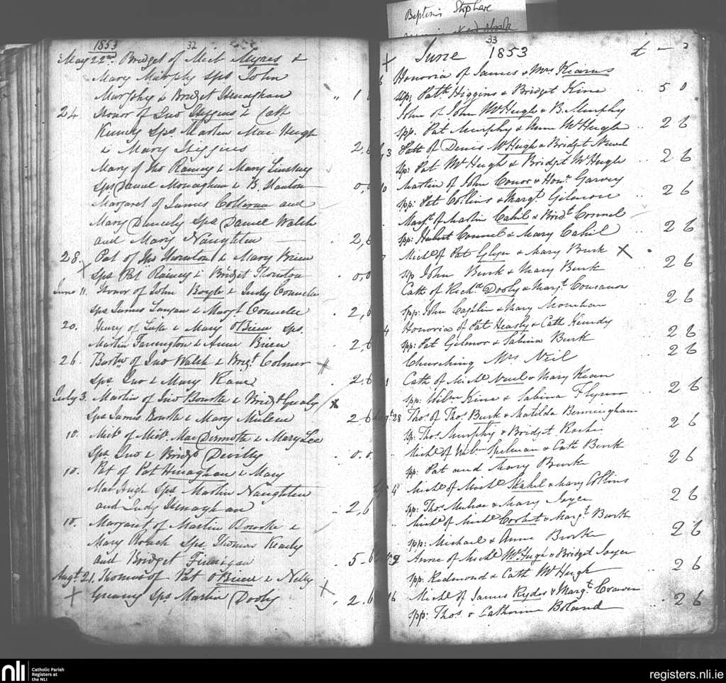Donaghpatrick; County of Galway; Archdiocese of Tuam. Baptisms, May 1853 to Oct. 1853