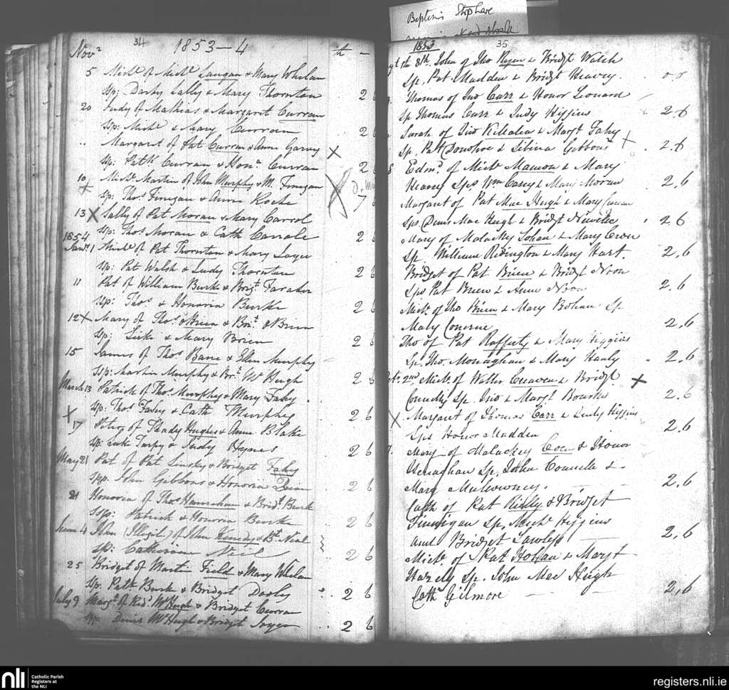 Donaghpatrick; County of Galway; Archdiocese of Tuam. Baptisms, Nov. 1853 to Oct. 1854