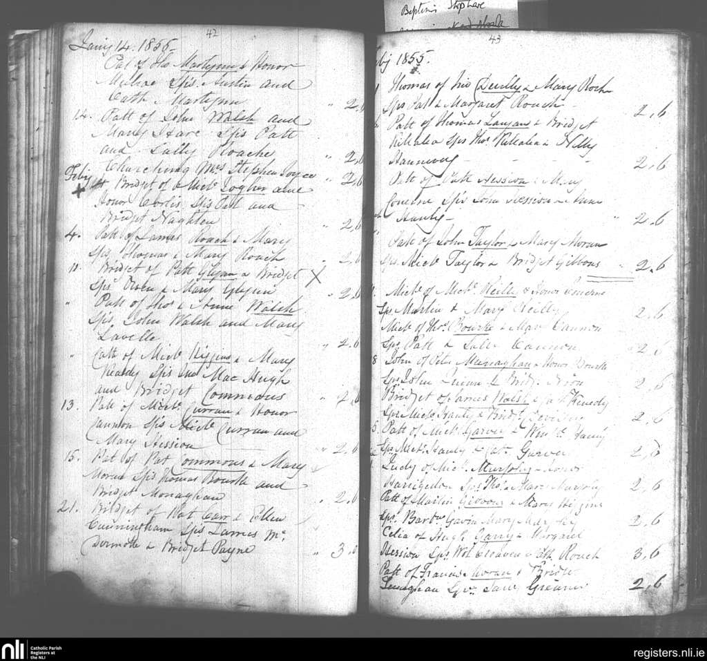 Donaghpatrick; County of Galway; Archdiocese of Tuam. Baptisms, Jan. 1855 to Apr. 1855