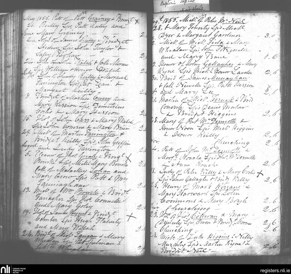 Donaghpatrick; County of Galway; Archdiocese of Tuam. Baptisms, May 1855 to Dec. 1855