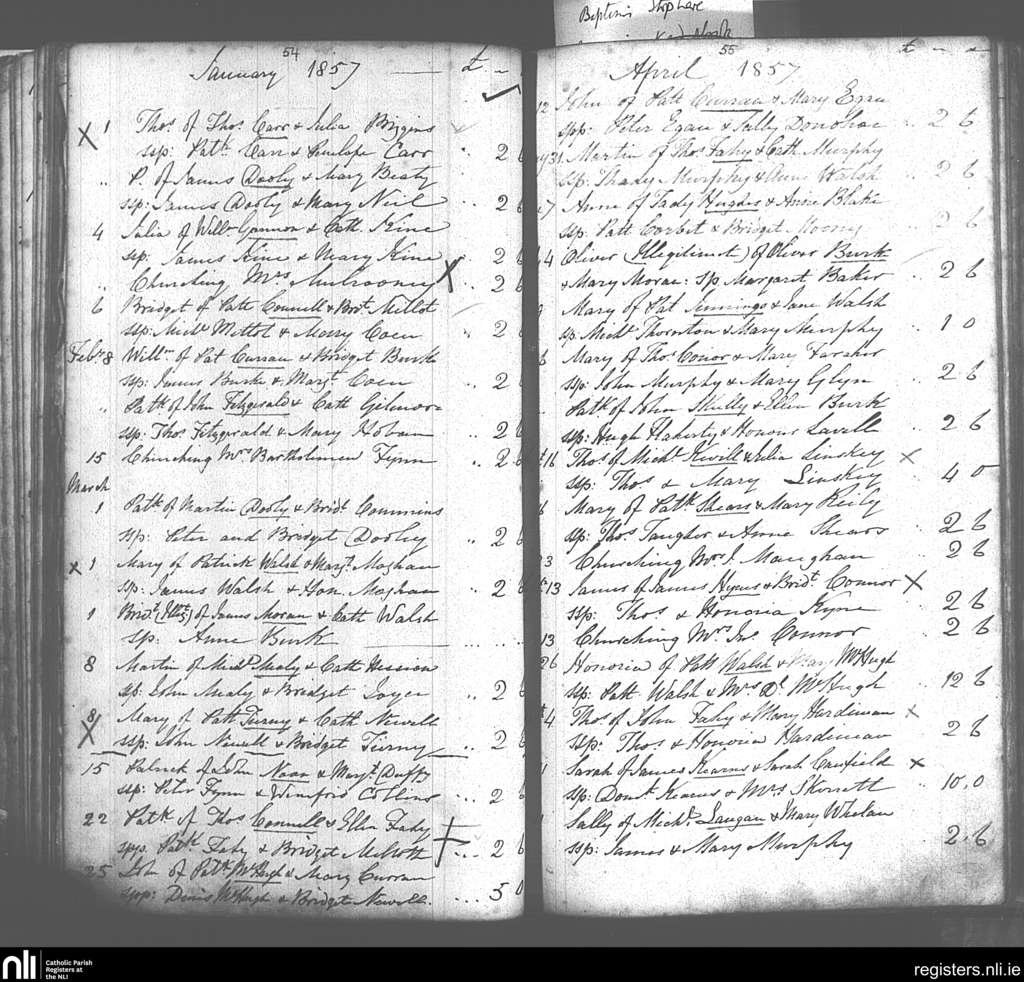 Donaghpatrick; County of Galway; Archdiocese of Tuam. Baptisms, Jan. 1857 to May 1857