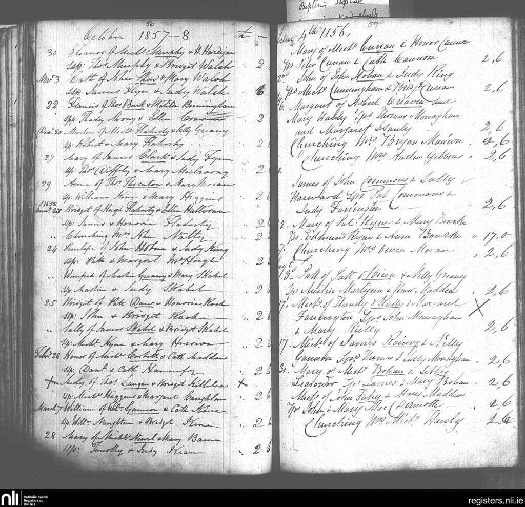 Donaghpatrick; County of Galway; Archdiocese of Tuam. Baptisms, Oct. 1857 to Aug. 1858