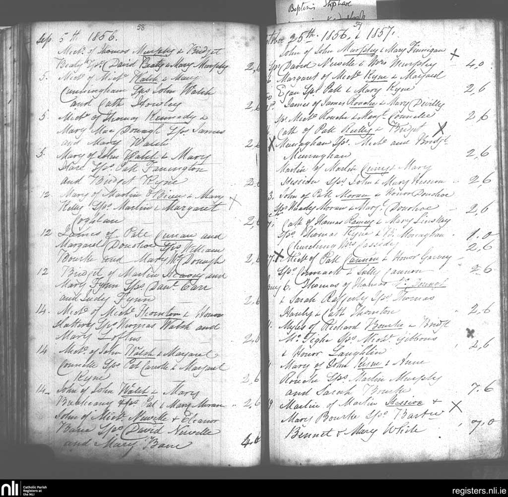 Donaghpatrick; County of Galway; Archdiocese of Tuam. Baptisms, Sep. 1856 to Jan. 1857