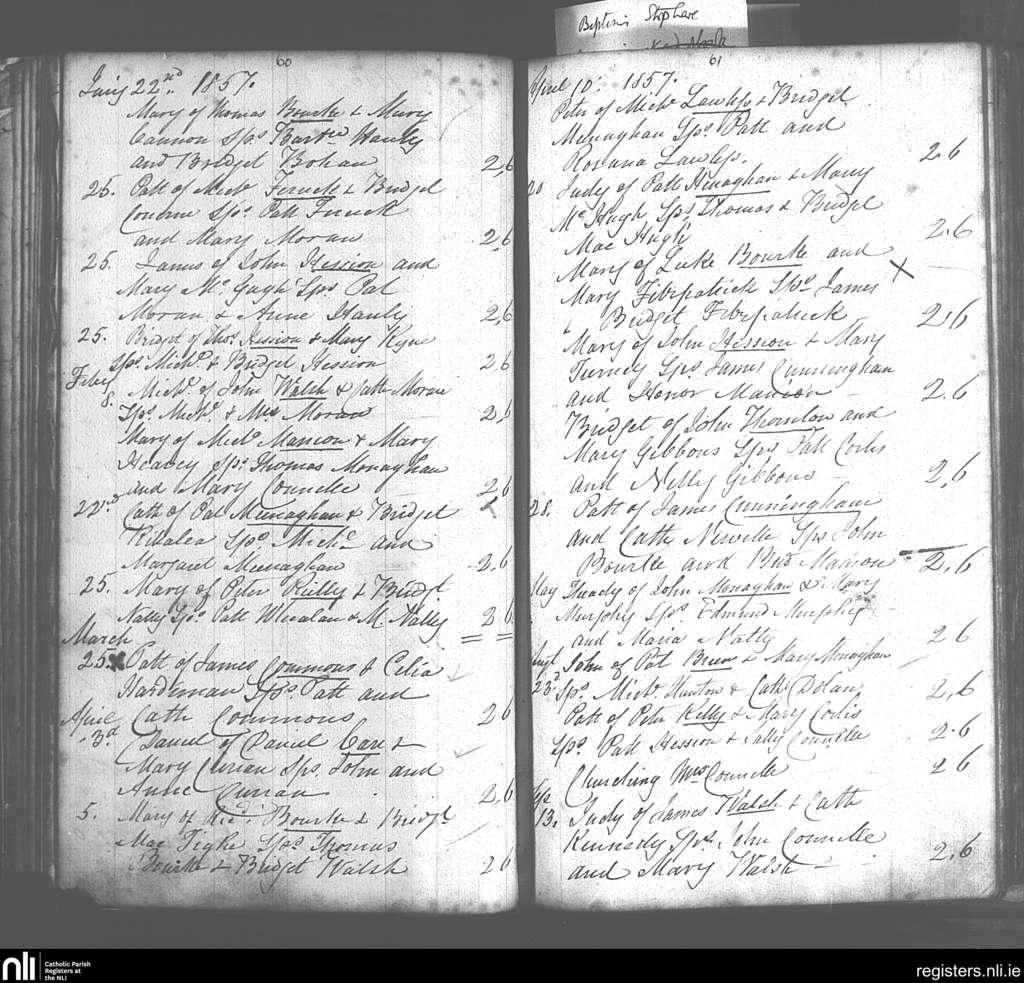 Donaghpatrick; County of Galway; Archdiocese of Tuam. Baptisms, Jan. 1857 to Sep. 1857