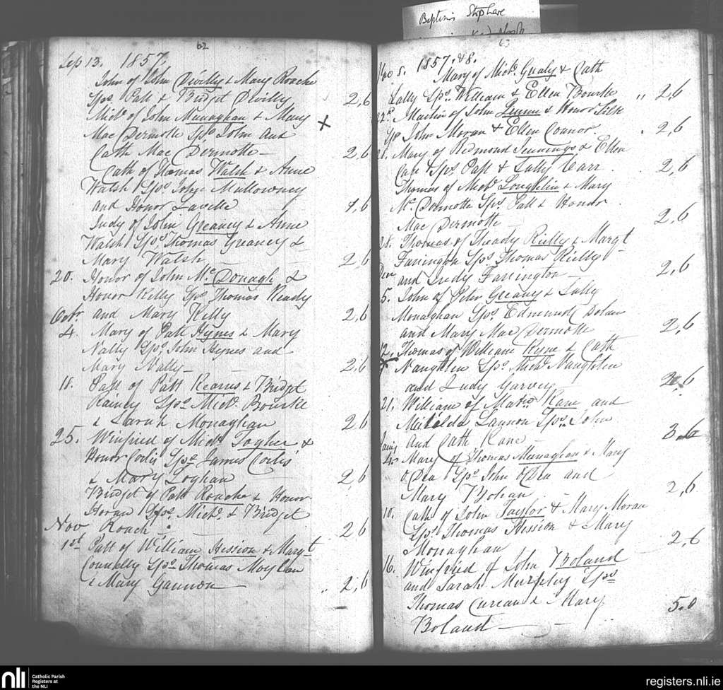 Donaghpatrick; County of Galway; Archdiocese of Tuam. Baptisms, Sep. 1857 to Jan. 1858