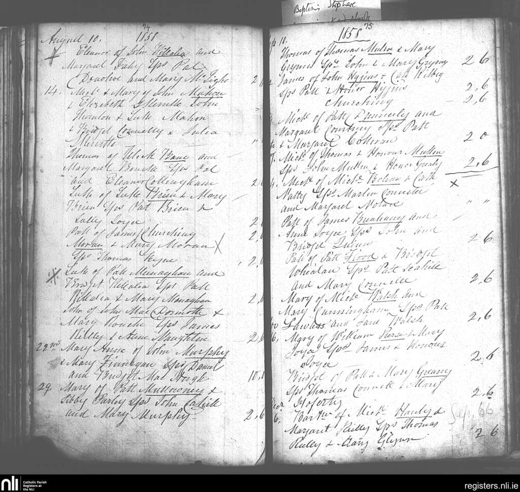 Donaghpatrick; County of Galway; Archdiocese of Tuam. Baptisms, Aug. 1858 to Dec. 1858