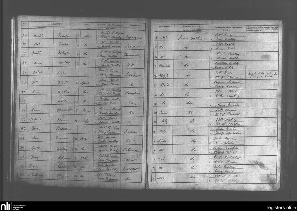 Clare Island; County of Mayo; Archdiocese of Tuam. Baptisms, Feb. 1855 to Nov. 1855