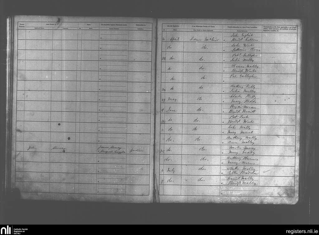 Clare Island; County of Mayo; Archdiocese of Tuam. Baptisms, Apr. 1857 to July 1857