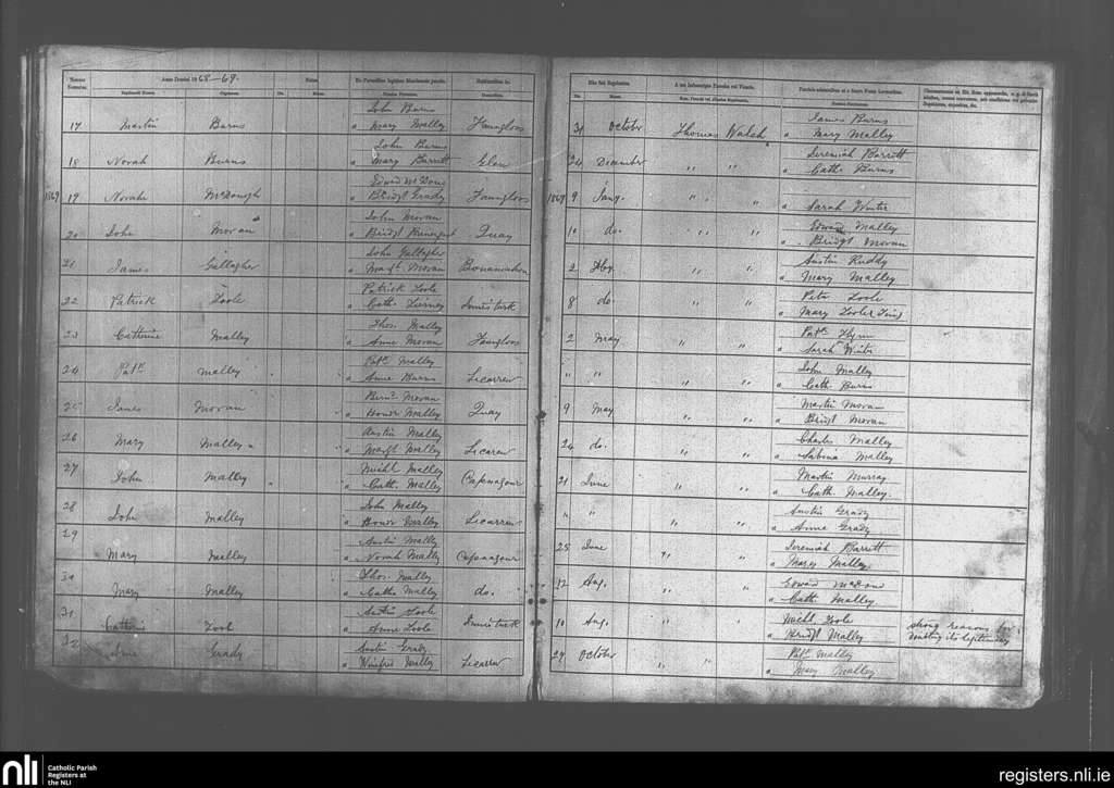 Clare Island; County of Mayo; Archdiocese of Tuam. Baptisms, Oct. 1868 to Oct. 1869