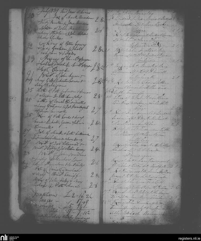 Kilcolman; County of Mayo; Archdiocese of Tuam. Baptisms, July 1839 to Aug. 1839
