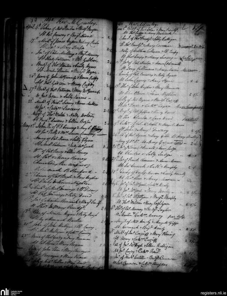 Kilcolman; County of Mayo; Archdiocese of Tuam. Baptisms, Apr. 1842 to July 1842