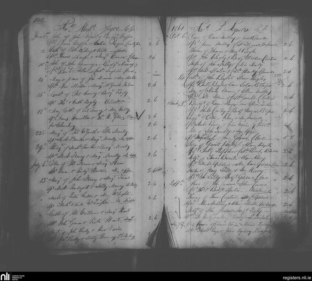 Kilcolman; County of Mayo; Archdiocese of Tuam. Baptisms, Oct. 1861 to July 1862